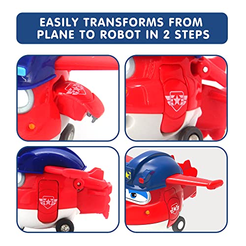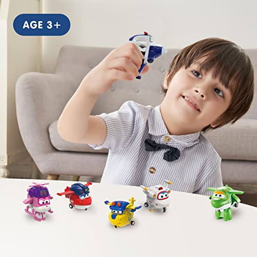 🧒 KINDERSPIELZEUG 3 JAHRE – Die Transform-a-Bots Spielzeugflugzeuge und Helikopter von Super Wings sind für Kinder ab 3 Jahren geeignet. Kinderspielzeug, leicht zu halten; Kleines verwandelbares Spielzeug, das überallhin mitgenommen werden kann.