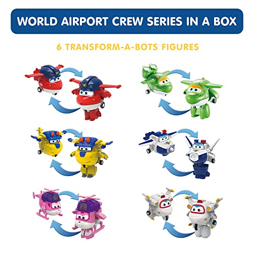 Super Wings – Set Tranform-a-bots x6 + Figuren aus PVC x4 – Verwandelbare Spielflugzeuge und Roboterfiguren aus der Zeichentrickserie Super Wings – Spielzeug für Kinder ab 3 Jahren