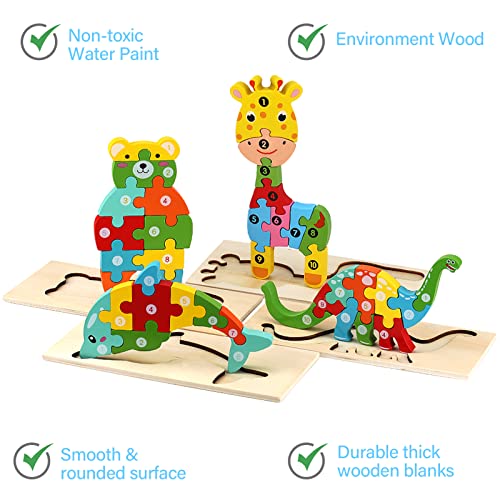 【Holzpuzzle für Kleinkinder 1-3】 Montessori-Holzpuzzles mit Tieren sind ein Lernspielzeug für 2-3-4-Jährige.Die Giraffe, der Dinosaurier, der Delfin und der Bär sind die Lieblingspuzzles für Kleinkinder.Jedes Puzzle ist sehr hell und hat die perfekte Größe für Kinder , leicht zu tragen und als Reisespiel zu verwenden, das das beste Geschenk für 2-jährige Mädchen und Jungen ist.