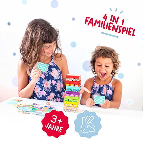 Nene Toys Pädagogisches Kinderspiel ab 3 Jahre – Wackelturm 4 in 1 aus Holz mit Farben und Tieren – Spielzeug für Mädchen und Jungs von 3 bis 9 Jahren – Stapelturm Holz Brettspiel