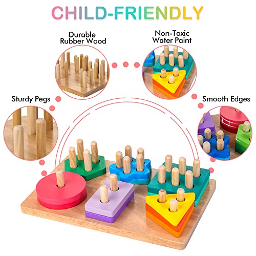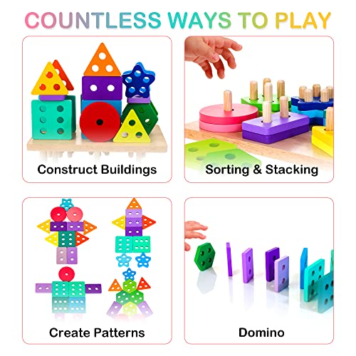 Specification: HELLOWOOD Montessori Spielzeug ab 1 2 3 Jahre, Holz Sortier- & Stapelspielzeug Steckpuzzle für 12+ Monate Baby-Jungen & Mädchen, 24pcs geometrische Baukasten, Shape Sorter Puzzles