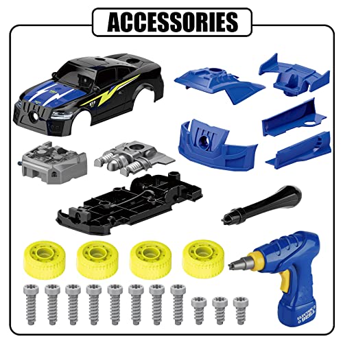Einfache Montage: DIY Montage Spielzeug Auto, der 26 Teile enthält, besteht aus die Räder, elektrische Bohrmaschine, Schrauben und Spielzeug Bohrer, um das Aussehen zu bauen, auseinanderzunehmen und wieder aufzubauen Ihres Rennwagens zu verändern.