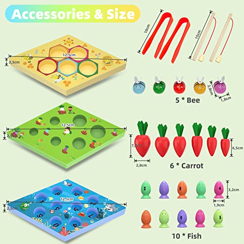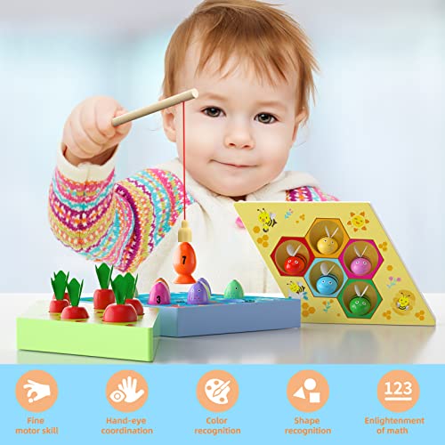 Specification: Uping Magnetisches Angelspiel Holzspielzeug 3 in 1 Montessori Motorikspielzeug Montessori Sortierspiel Holzpuzzle Karottenernte Lernspielzeug für Kinder als Geburtztag Geschenk